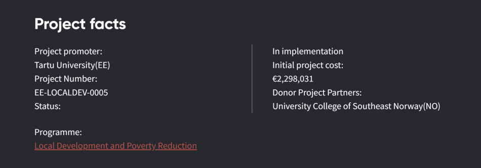 This project is supported through the EEA and Norway Grants local development programme in Estonia which aims to build a unified and enduring society. The programme helps confront some of the challenges threatening Estonia's social fabric – from health concerns and educational shortfalls to social welfare. Central to this programme is the enhancement of the well-being of the nation's children and youth, tackling gender-based violence, bolstering the healthcare system, and breathing life back into its rich cultural heritage.