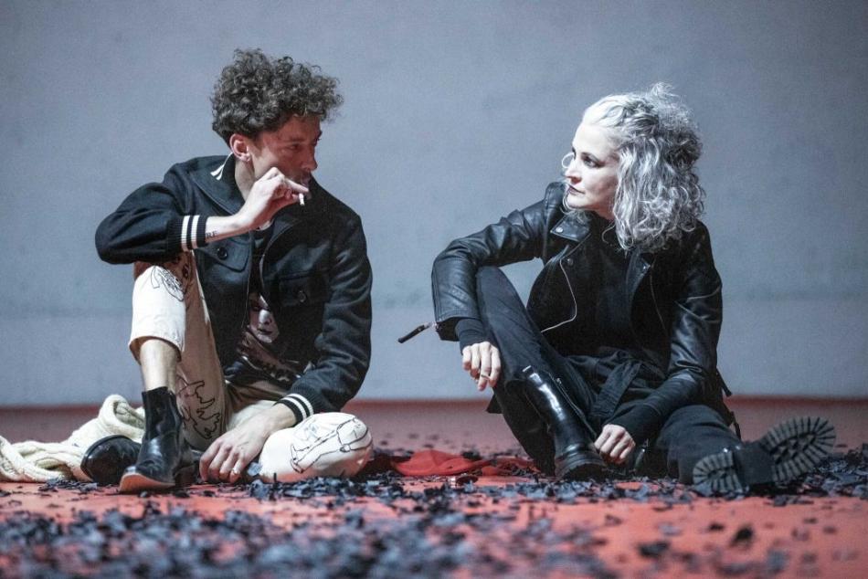 The characters, Máni Steinn and Sóla in the play Moonstone. © Studio Hrdinů.