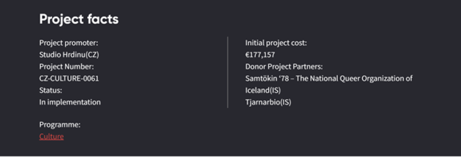 “Thanks to the support of the EEA Grants, we can work in conditions that the environment of the Czech independent scene fails to provide, or rather, has no chance to secure.”